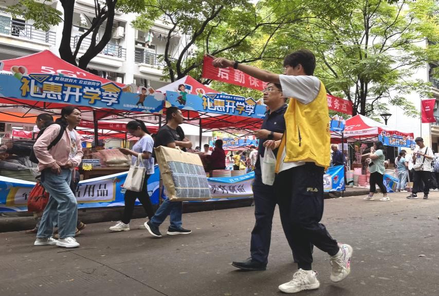 武科大网讯(通讯员罗睿 摄影徐响)9月13日至9月14日,几千余名武汉科技大学2023级本科新生如期而至。他们朝气蓬勃、青春洋溢,怀揣梦想从五湖四海汇聚我校,共同开启青春的崭新篇章。为保障新生入学流程的一切顺利,保卫处联合学生安全自治委员会组织了二百余名学生开展了志愿活动。醒目的黄马甲随处可见,给新生们带来了满满的安全感,确保校内交通流畅,时刻提醒新生注意防范诈骗。
