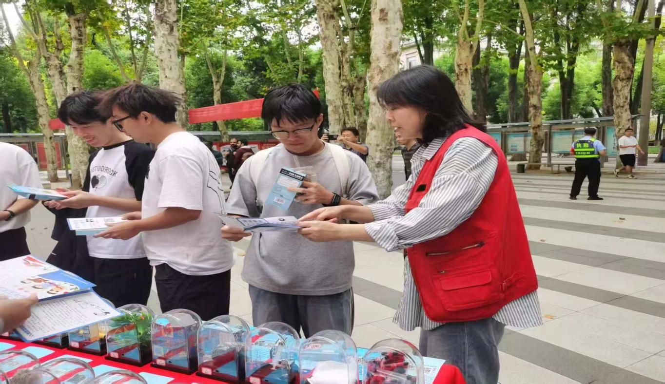 本网讯(通讯员蒋开胜) 10月11日上午,一场主题为“课堂无毒书声朗·青春有戒未来亮”的禁毒宣传教育活动在青山校区小树林广场成功举行。本次活动由我校保卫处联合青山分局红卫路派出所、红卫路街道办事处、红卫路街道社区戒毒(康复)中心共同举办,旨在构建“校-警-地-社”四位一体的禁毒宣传新格局,面向全体在校师生及教职员工,普及禁毒知识,筑牢校园禁毒防线。