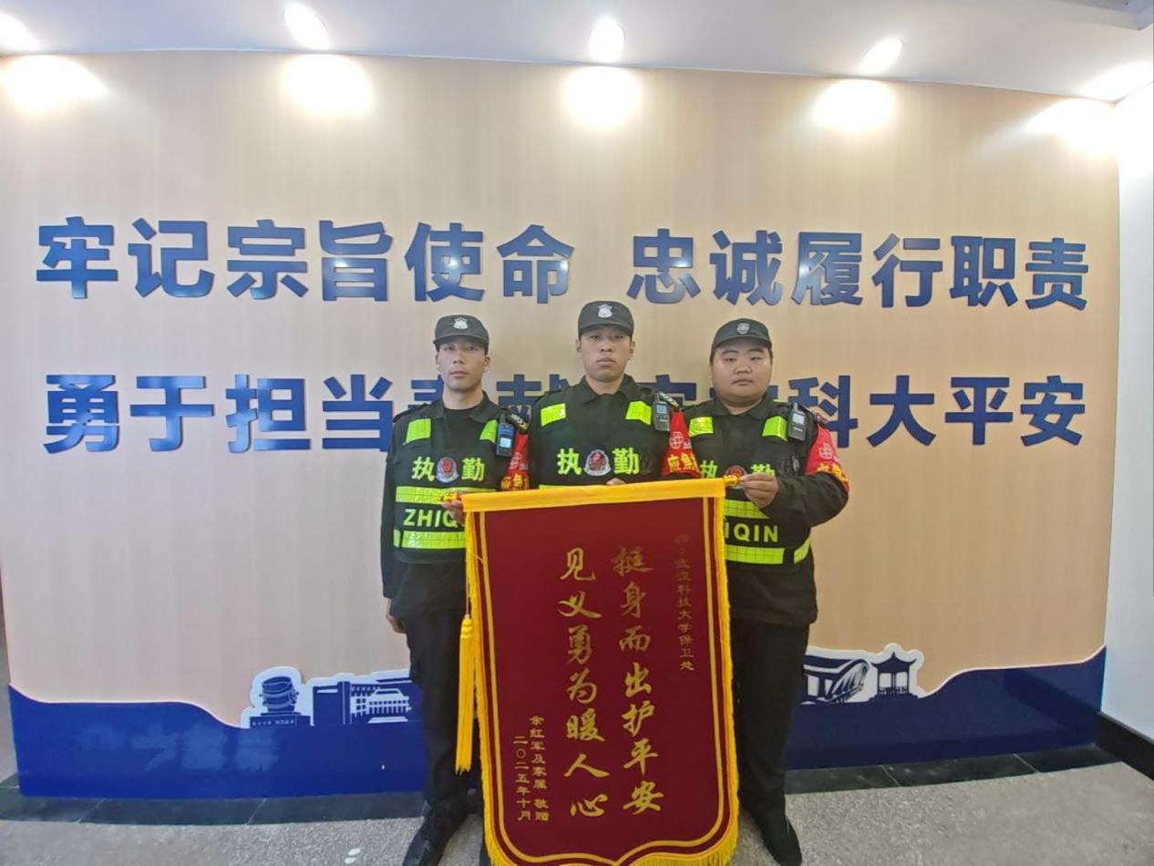 本网讯(通讯员王剑)“要不是你们及时救助,后果真的不堪设想。你们不仅是校园的守护者,更是我们全家的恩人!”10月30日下午,教职工家属将一面写有“挺身而出护平安,见义勇为暖人心”的锦旗送到了保卫处黄家湖校区保卫办公室,患者家属对三位巡逻队员的救命之恩感激不尽。
