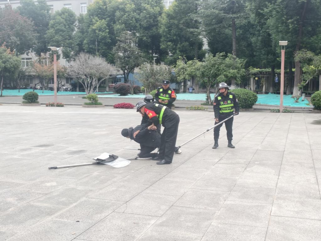 此次演练聚焦实战需求,旨在检验和提升校园安保力量与公安专业力量的协同处置能力。邀请分局反恐大队教官及警务室民警担任主讲与示范,向安保队员详细讲解并现场演示了在面对突发暴力威胁时如何运用基本格斗技巧进行有效防护,配合两至四人组成战术小组,对嫌疑人实施控制与安全带离的操作流程。同时强调了动作的规范性、时机的把握以及力度的控制,确保在制伏暴徒的同时,最大限度减少不必要的伤害。