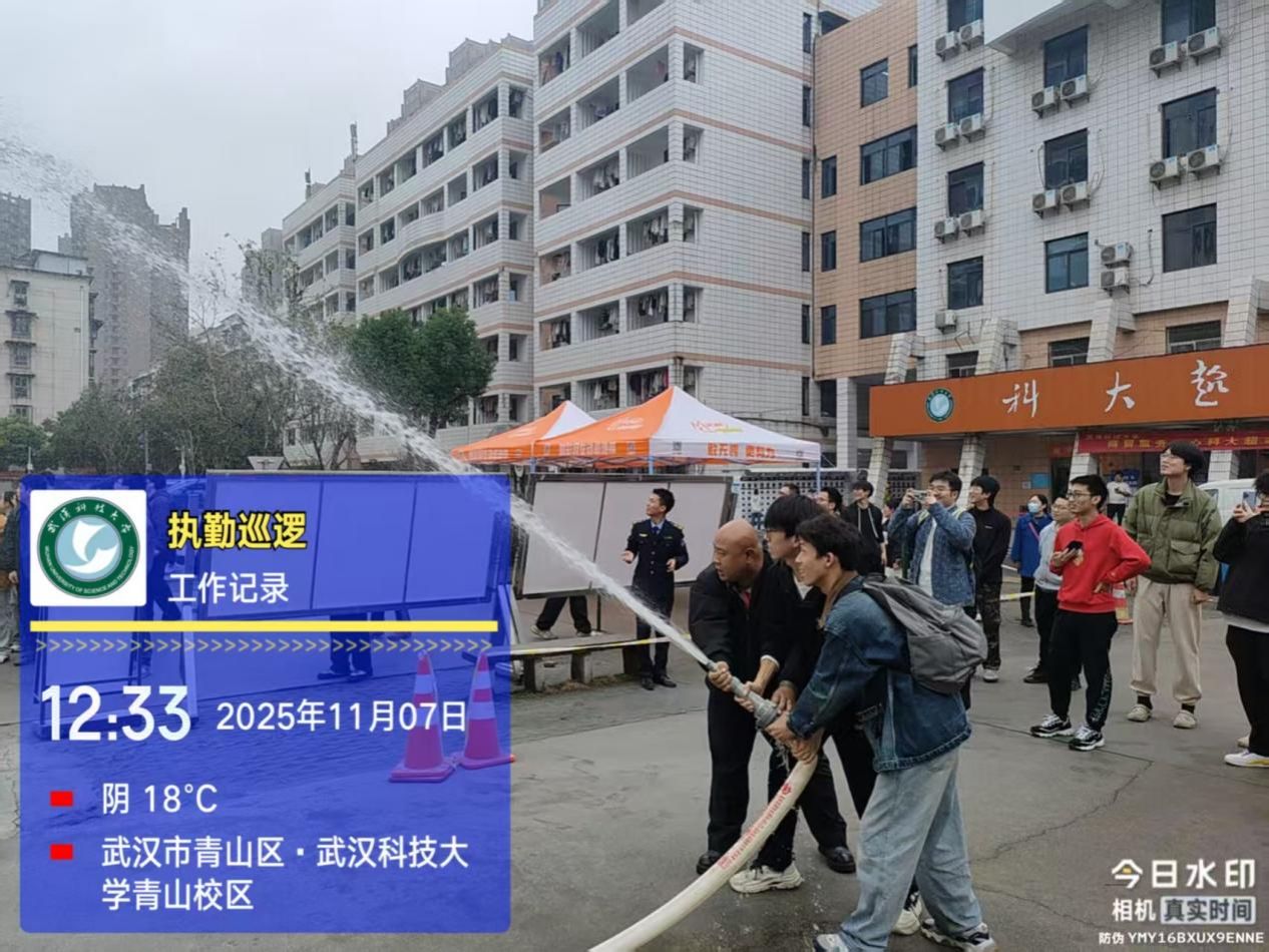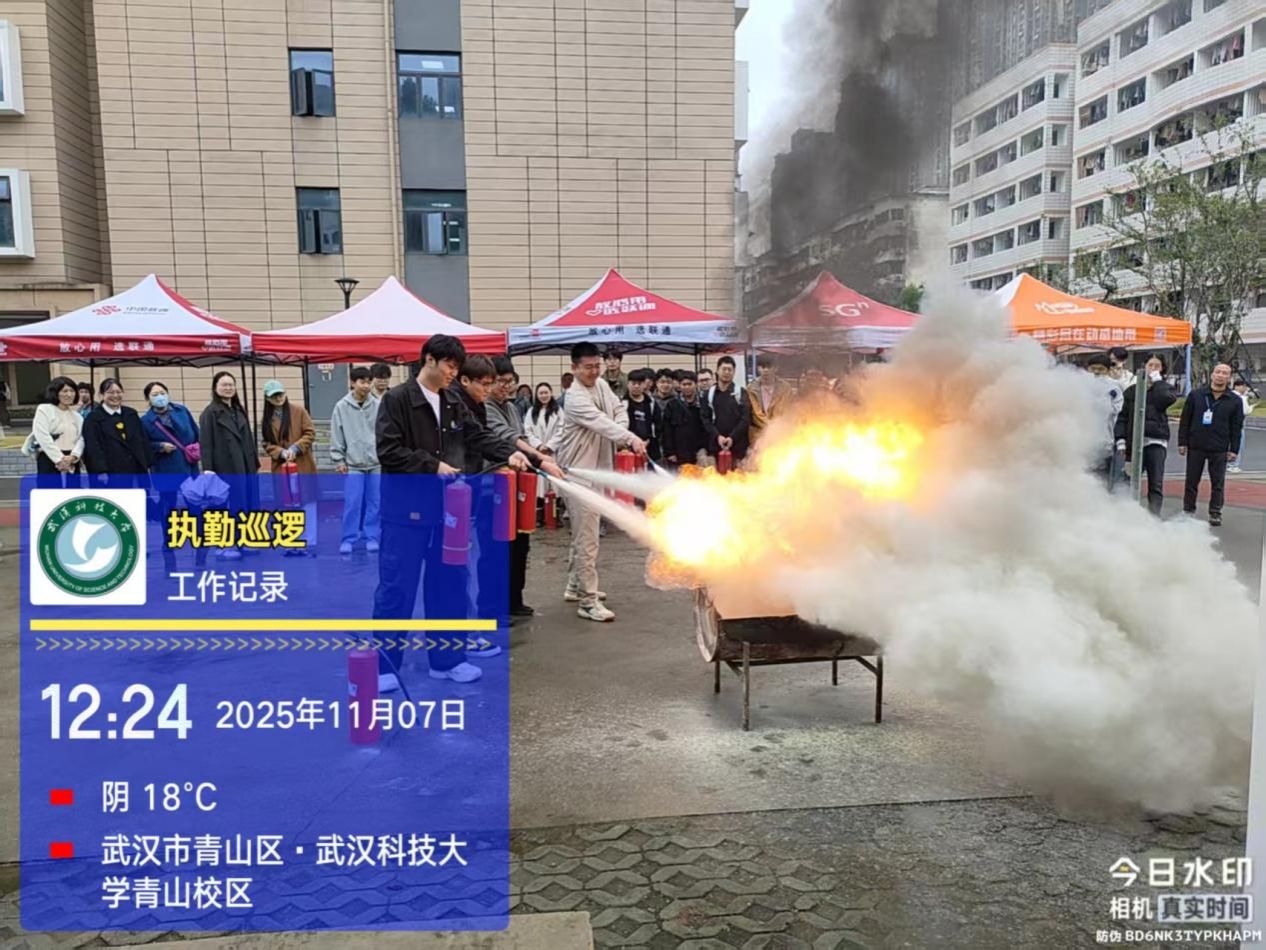 本网讯(通讯员陈伟锋 吴涛)为进一步强化师生消防安全意识,提升应急避险和自救互救能力,筑牢校园安全防线,2025年11月7日中午12:00时,保卫处在青山校区室外羽毛球广场举办消防器材展示及实操演练活动。材料学部、冶金与能源学院、资源与环境工程学院、化学与化工学院、机械工程学院、人工智能与自动化学院、电子信息学院全体师生代表、辅导员共同参与,沉浸式学习消防安全知识与实操技能。